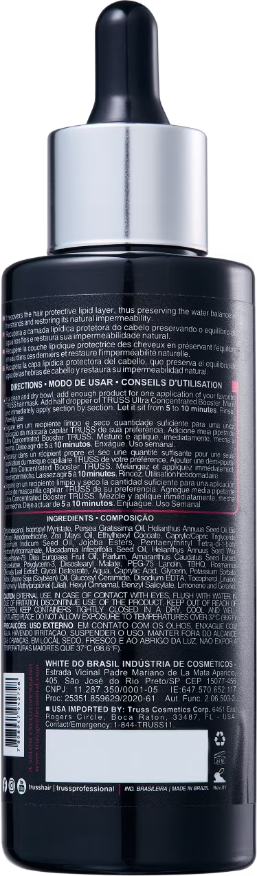O Tratamento Capilar Truss Ultra Concentrated Booster recupera a camada lipídica protetora do cabelo, preservando o equilíbrio de água e a impermeabilidade natural dos fios. Utilize o produto para dar um upgrade no seu momento de hidratação capilar e conquista fios ainda mais brilhantes!