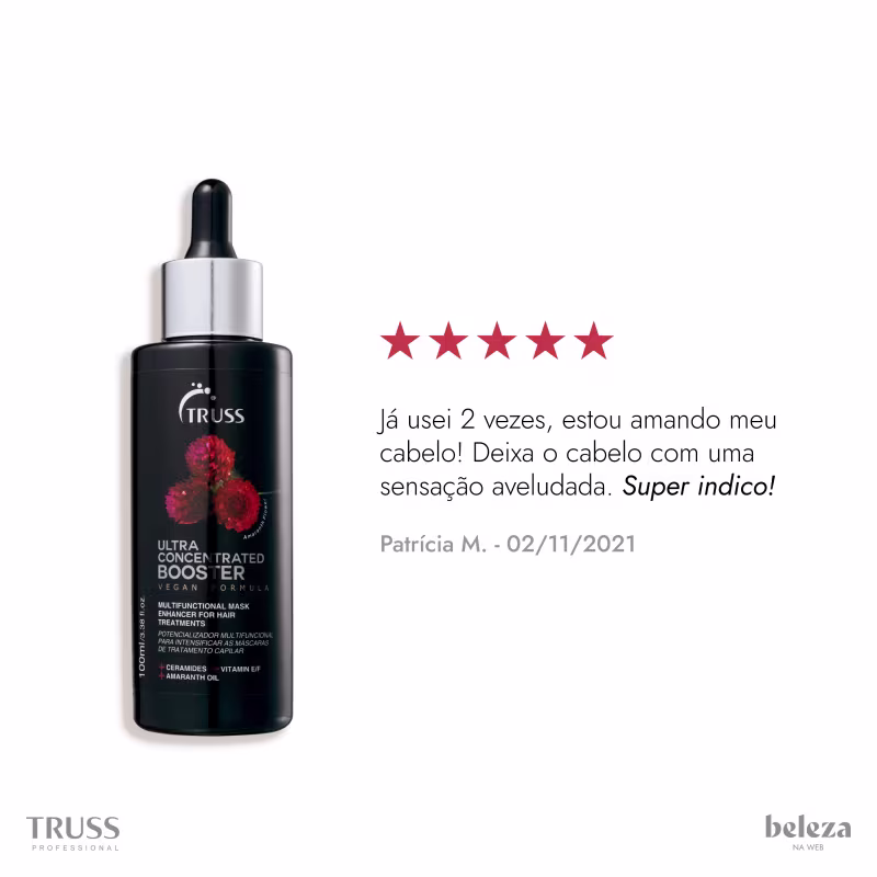 Tratamento capilar potencializador. Truss Ultra Concentrated Booster é um produto multifuncional para intensificar as máscaras de tratamento.