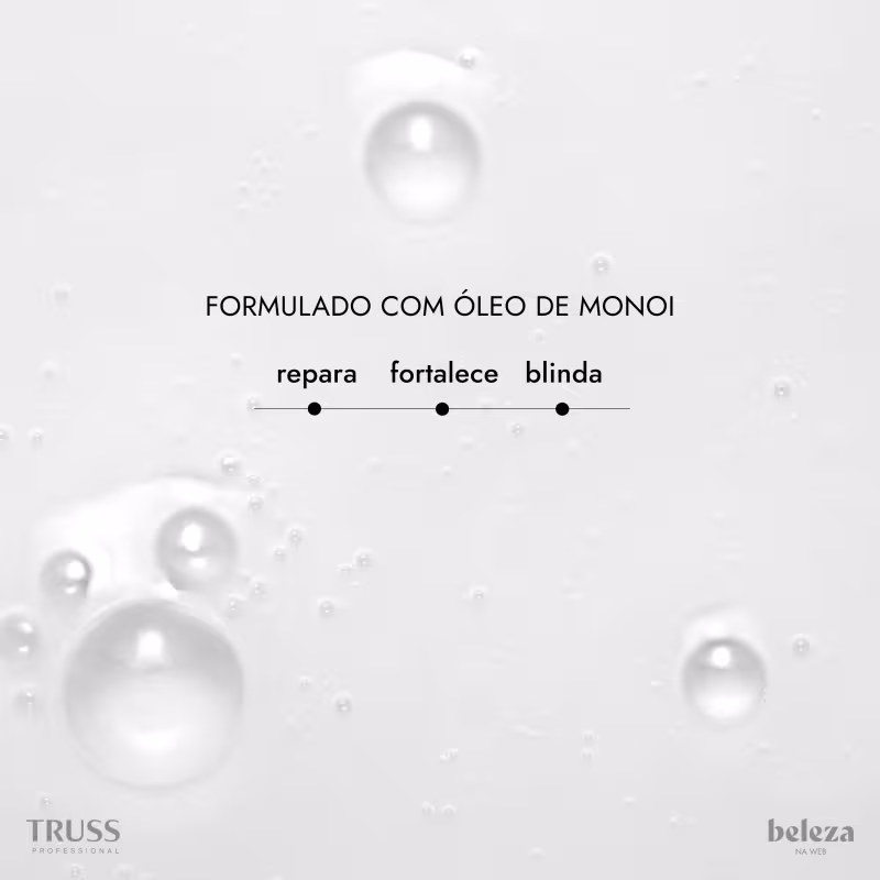 Óleo reconstrutor para cabelos danificados, ressecados e fragilizados. TRUSS Uso Obrigatório é um produto revolucionário que reúne o poder de um condicionador líquido, leave-in e tratamento profundo em uma única fórmula.
