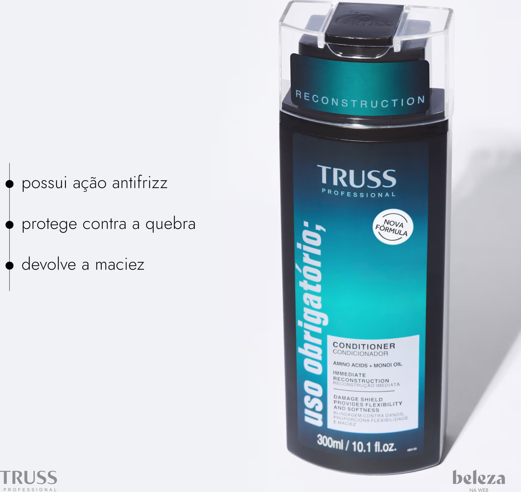 Condicionador TRUSS Uso Obrigatório Reconstruction: promove reestruturação da fibra capilar. Melhores Condicionadores da Truss na BLZ. Ver mais ❯