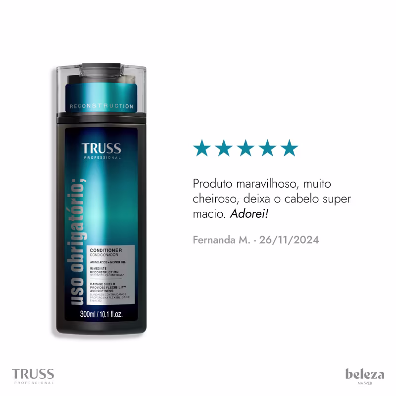 Condicionador TRUSS Uso Obrigatório Reconstruction: promove reestruturação da fibra capilar. Melhores Condicionadores da Truss na BLZ. Ver mais ❯