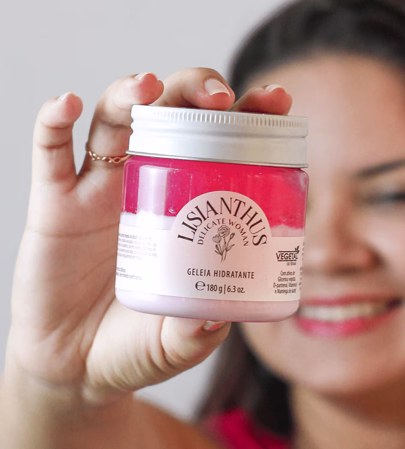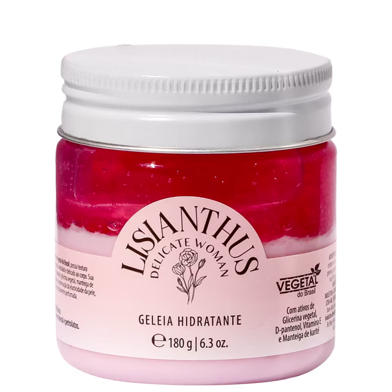 A Geleia Hidratante Vegetal do Brasil Lisianthus traz formulação composta por D-Pantenol, Glicerina Vegetal, Manteiga de Karité e Vitamina E, que auxiliam na preservação da elasticidade de pele, deixando-a macia, hidratada e delicadamente perfumada