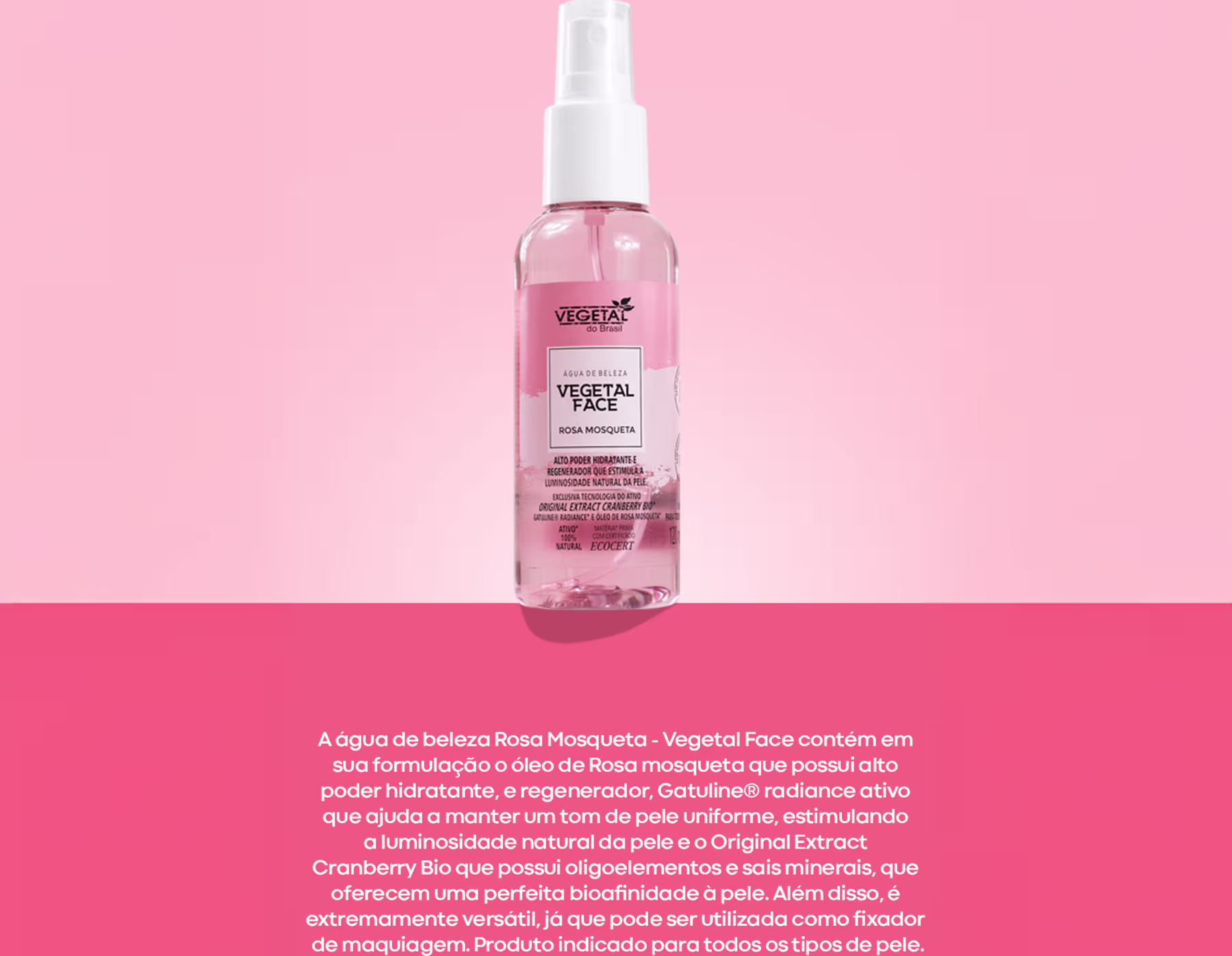 Água de Beleza Vegetal do Brasil Rosa Mosqueta: com alto poder hidratante. Melhores Produtos de Vegetal do Brasil na BLZ. Ver mais ❯