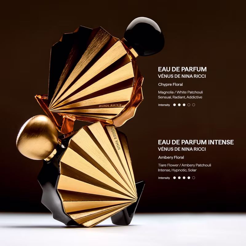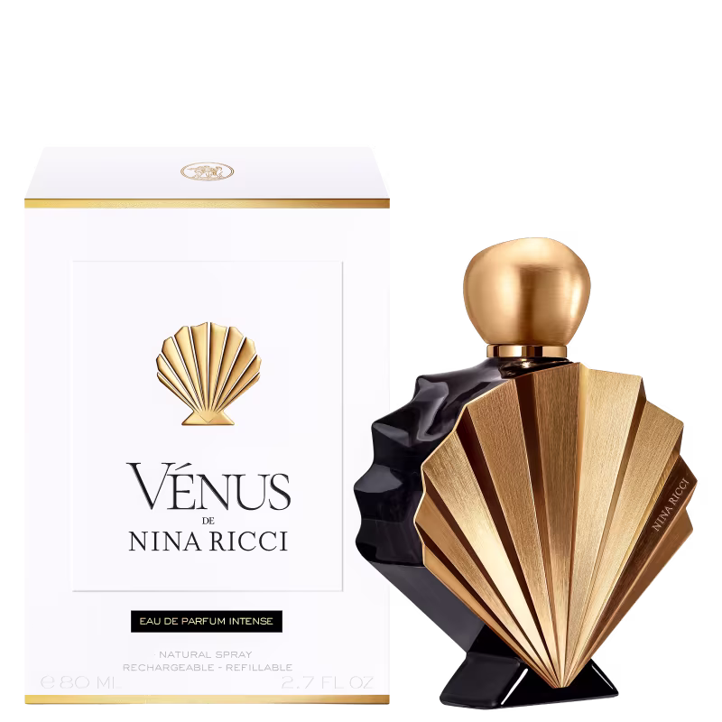 O Eau de Parfum da Venus Intense Nina Ricci é projetada para mulheres que desejam expressar sua elegância e poder interior. A fragrância combina notas cítricas vibrantes de Mandarina e Licor de Cassis em sua saída, seguidas por um coração floral delicado com Flor de Tiaré, Jasmim Sambac e Magnólia. O fundo revela uma base quente e envolvente com Benjoim, Baunilha Bourbon e Patchouli, criando um rastro sensual e sofisticado. O frasco icônico em formato de concha apresenta detalhes em dourado escovado e vidro laqueado em preto profundo, simbolizando a dualidade entre luminosidade solar e mistério cativante.