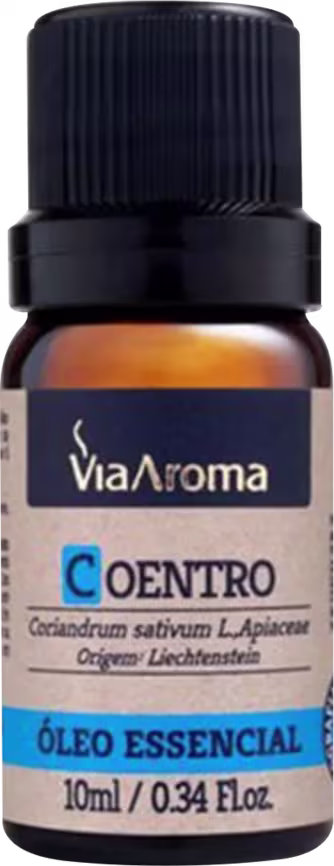 O Óleo Essencial Via Aroma Coentro alivia câimbras e espasmos musculares, indicado para azia, náusea, gastrite e má digestão. É um descongestionante e anti-inflamatório, atua no tratamento de rinite e sinusite. Como cosmético ele estimula a circulação sanguínea e linfática, sendo muito usado em massagens e drenagens, é recomendado para edema, retenção de líquido e má circulação. Pode ser usado em aromatizadores elétricos e também em massagens, quando diluído em óleo vegetal.