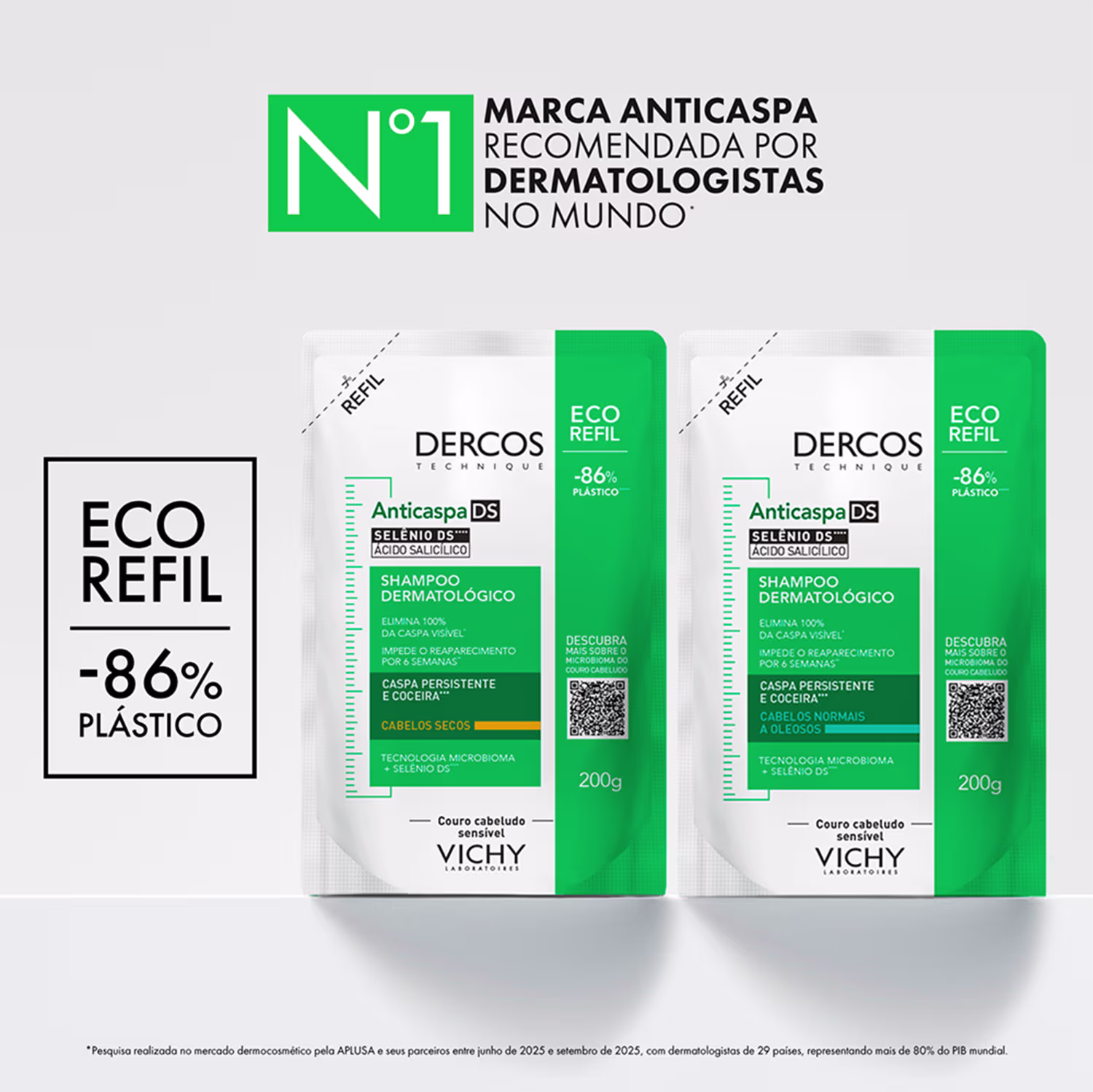 O Shampoo Anticaspa Vichy Dercos DS Cabelos Equilibrados a Oleosos atua diretamente na causa da caspa persistente. Sua fórmula exclusiva é enriquecida com a avançada tecnologia Microbioma com Selênio DS, um poderoso ativo que reequilibra o microbioma capilar e combate o fungo causador da caspa. A ação é imediata, eliminando 100% das caspas visíveis desde a primeira lavagem e prevenindo seu reaparecimento por até seis semanas. Além disso, foi especialmente formulado para cabelos normais a oleosos, controlando e removendo a oleosidade excessiva do couro cabeludo e dos fios, conforme comprovado por 90% dos usuários que notaram redução em apenas uma semana.