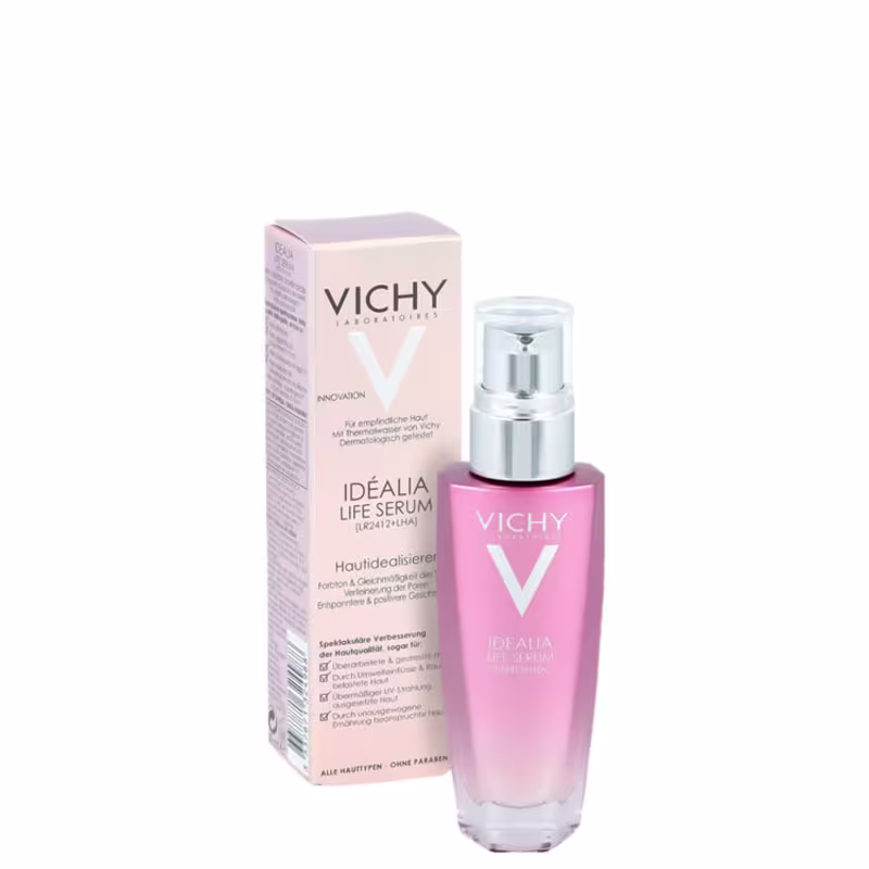 Sérum anti-idade para todos os tipos de pele. Vichy Idéalia Life Serum reduz os poros e suaviza linhas finas para pele mais radiante.