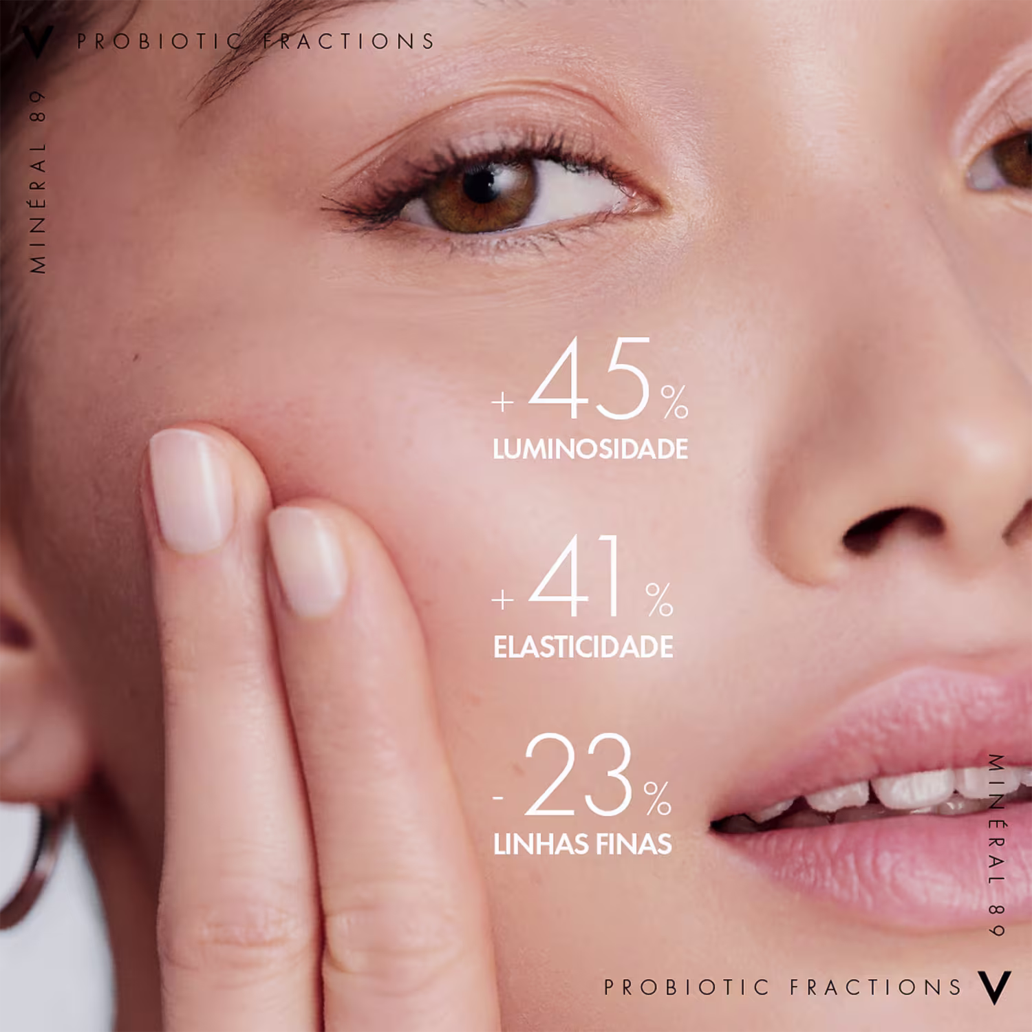 O Sérum Redutor de Linhas Vichy Minéral 89 Probiotic Fractions é o único da categoria composto por Frações Probióticas potencializadas por Água Vulcânica de Vichy e 4% de Niacinamida. O resultado é um produto altamente poderoso, capaz de resgatar a boa saúde da pele de maneira prática e visível. Também acalma, minimiza a sensibilidade e ajuda a reduzir as inflamações.