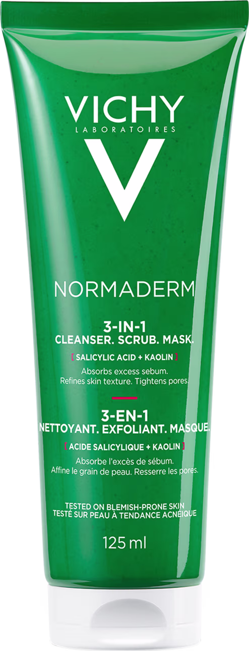 Vichy Normaderm 3 em 1 elimina impurezas, reduz a oleosidade, desobstrui poros, remove células mortas e matifica a pele. Versátil e cheio de funções, deixa sua pele bem limpa e com o excesso de óleo sob controle.