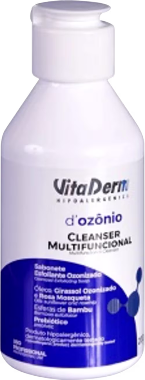 Sabonete esfoliante ozonizado. Vita Derm D'Ozônio Cleanser Multifuncional conta com alto grau de assepsia, proporcionando uma limpeza profunda.
