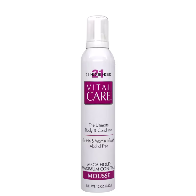Mousse para todos os tipos de cabelos. Vital Care 21h Hold Maximum Control possui fixação forte e garante o seu penteado por até 21 horas. Ele é indicado para aquelas modelagens que precisam permanecer intocáveis por um longe período ao longo de todo o dia. Ele deixa uma textura macia nos fios, sem deixá-los pegaosos, ressecados ou pesados demais.