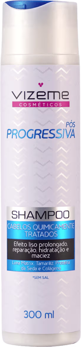 O Shampoo Vizeme Pós Progressiva proporciona cuidados para cabelos danificados que sofreram ações químicas (progressiva e alisamento) ou que estão profundamente danificados. O shampoo perolado de consistência cremosa melhora o aspecto oleoso que pode ocorrer em cabelos que passaram por química. Contém Manteiga de Karité, Proteína da seda, Colágeno Hidrolisado e Luna Matrix.