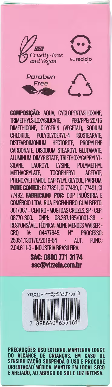 A Base Líquida Vizzela Cosméticos foi especialmente desenvolvida para facilitar a criação dos mais diferentes visuais, Com formulação impecável e oil-free, que ajuda a disfarçar imperfeições sem craquelar e sem estimular a produção de sebo, o produto - disponível em 18 cores diferentes - é ideal para incrementar com muita qualidade e diversão a sua make do dia ou da noite.