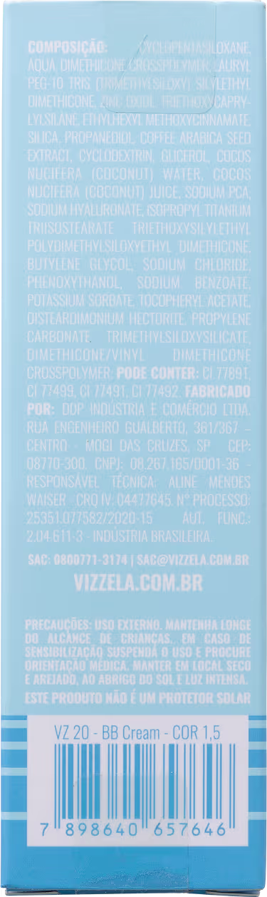 Vizzela Cosméticos 10 em 1 FPS 30 Cor 1,5 - BB Cream 35g