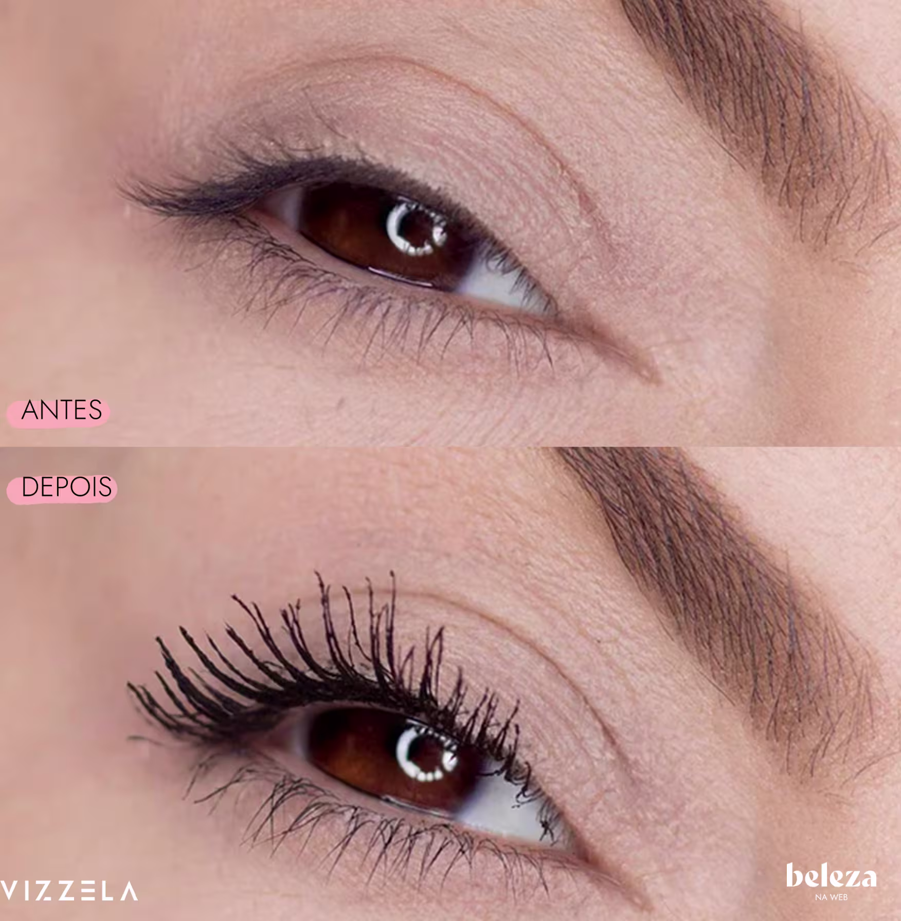 Máscara para cílios preta. Vizzela Big No Panda promove volume, definição e curvatura para os cílios.