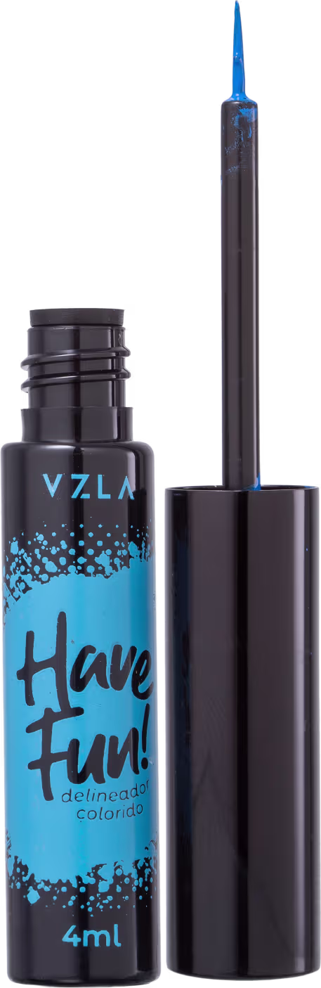 Delineador líquido colorido. Vizzela Cosméticos Have Fun! traz cores vibrantes e alta pigmentação para criar um delineado poderoso.