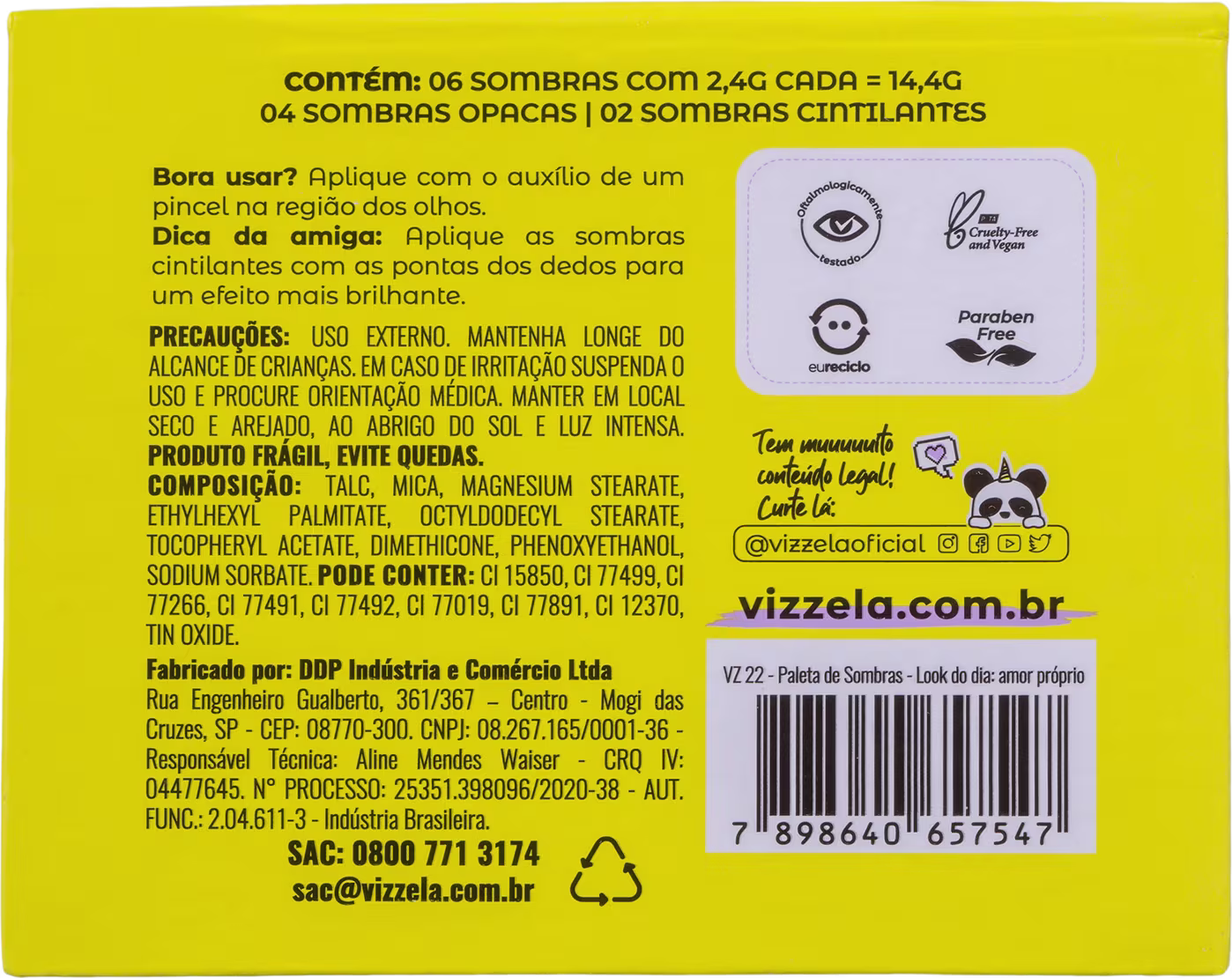 *Fórmula vegana, oftalmologicamente testada, cruelty free e paraben free. Selo PETA e Selo Eu Reciclo.