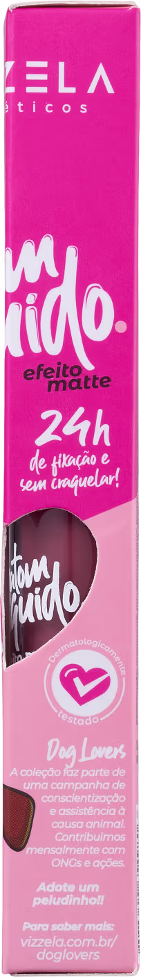 Batom líquido com acabamento matte. Com fórmula de longa duração, Vizzela Cosméticos Dog Lovers oferece cobertura uniforme sem craquelar.