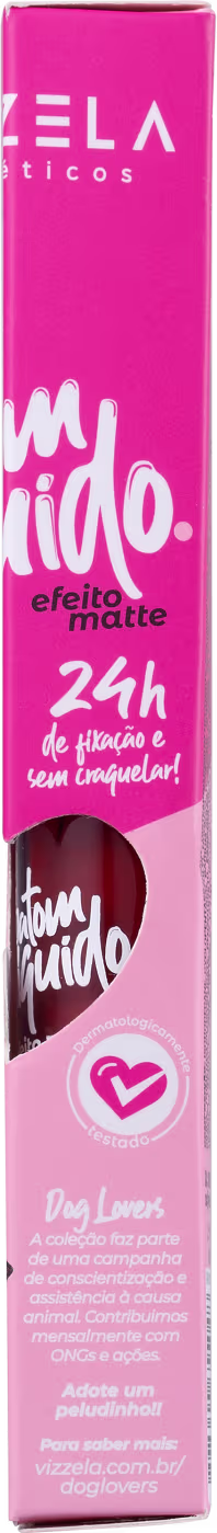 Batom líquido com acabamento matte. Com fórmula de longa duração, Vizzela Cosméticos Dog Lovers oferece cobertura uniforme sem craquelar.