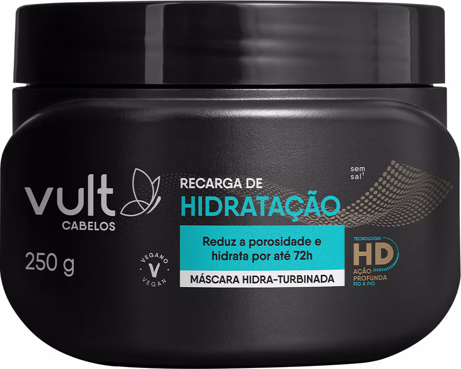 Máscara Hidra-Turbinada Vult Cabelos Recarga de Hidratação reduz a porosidade e hidrata por até 72 horas. Melhores Máscaras da Vult na BLZ. Ver mais ❯