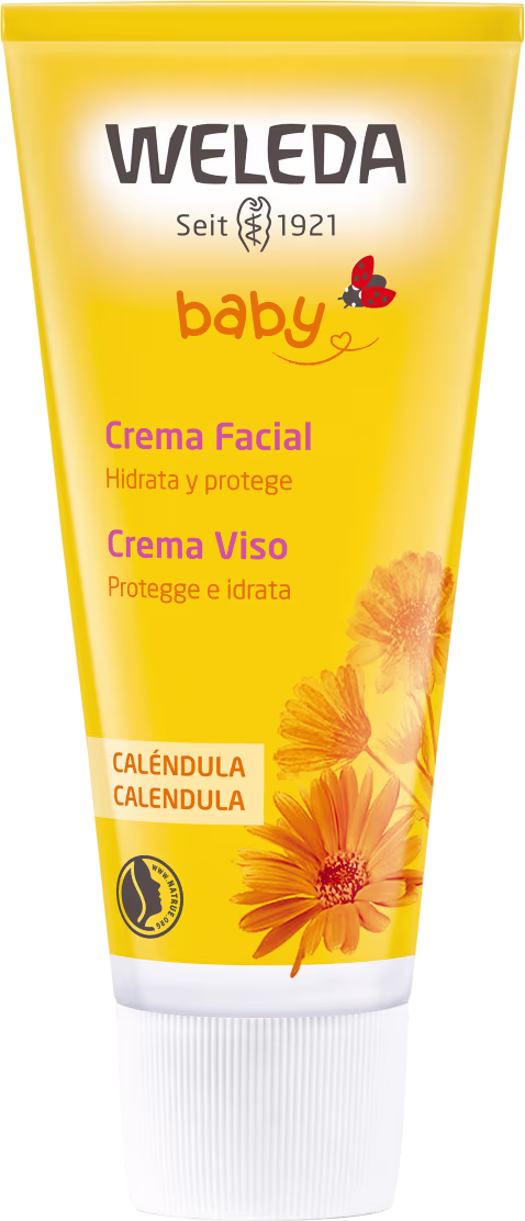 Weleda Creme Facial de Calêndula para Bebê mantém a umidade na pele do bebê, que é cinco vezes mais fina que a do adulto, sendo propicia a perda de hidratação. Pode ser usado desde o primeiro dia de vida. É livre de fragrâncias, corantes e conservantes artificiais e não tem matérias-primas derivadas de óleos minerais. Produto dermatologicamente testado e não testado em animais.