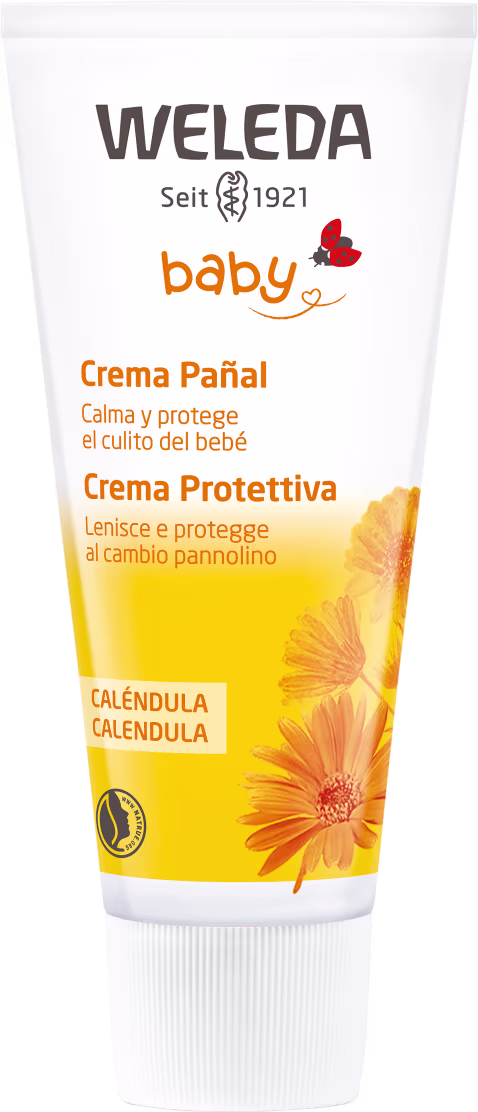 Creme para assaduras para pele delicada do bebê. Weleda Baby Calêndula Creme para Assaduras faz uma barreira de proteção suave que reduz a vermelhidão. Acalma a pele e impede que se forme novas assaduras. Há 30 anos cuidando da pele dos bebês.