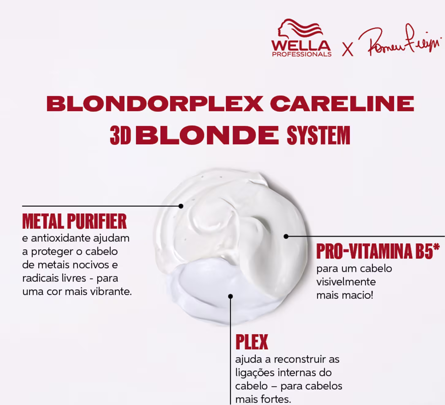 Com mais de 130 anos no mercado, e com origem alemã, Wella Professionals acompanha as tendências década após década e investe em estudos tecnológicos para estar sempre entre as maiores. A marca cuida do cabelo colorido, loiro, oleoso, sem vida, ressecado, envelhecido e com química ou alisamento. Com ativos poderosos, revitaliza a saúde capilar e recupera a beleza, o brilho, a maciez e o movimento dos fios. Há cem anos, a marca inova a cada dia para atender sempre e com mais atenção as suas clientes.