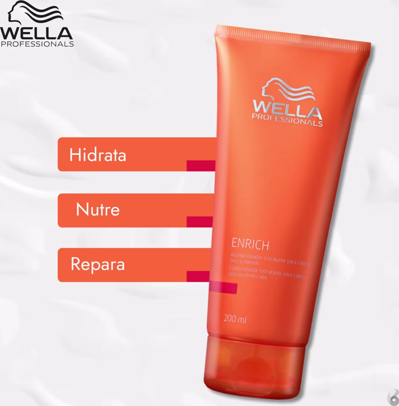 2. Wella Professionals Enrich Condicionador Hidratante 200ml: condicionador para cabelos secos e danificados. Todos os dias, restaura a vitalidade e maciez dos fios ressecados e sensibilizados. Desembaraça e nutre, mantendo eles leves e cheios de vida.