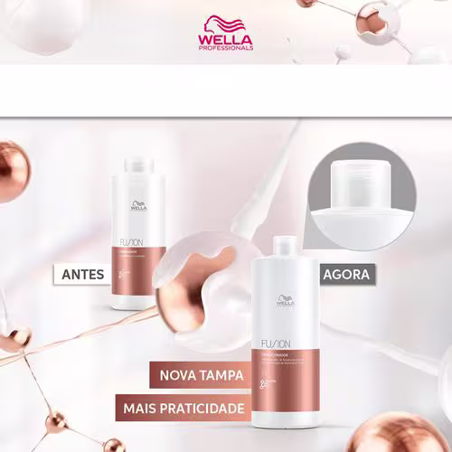 A fórmula conta com a tecnologia EDDS que remove impurezas metálicas por meio de ação antioxidante. Wella Fusion é uma linha projetada para reparar e proteger os cabelos contra quebras e danos. Além disso, sua fragrância combina nove aromas que remetem à sofisticação com seu toque de madeira florestal e notas de base quentes, como cedro e sândalo.