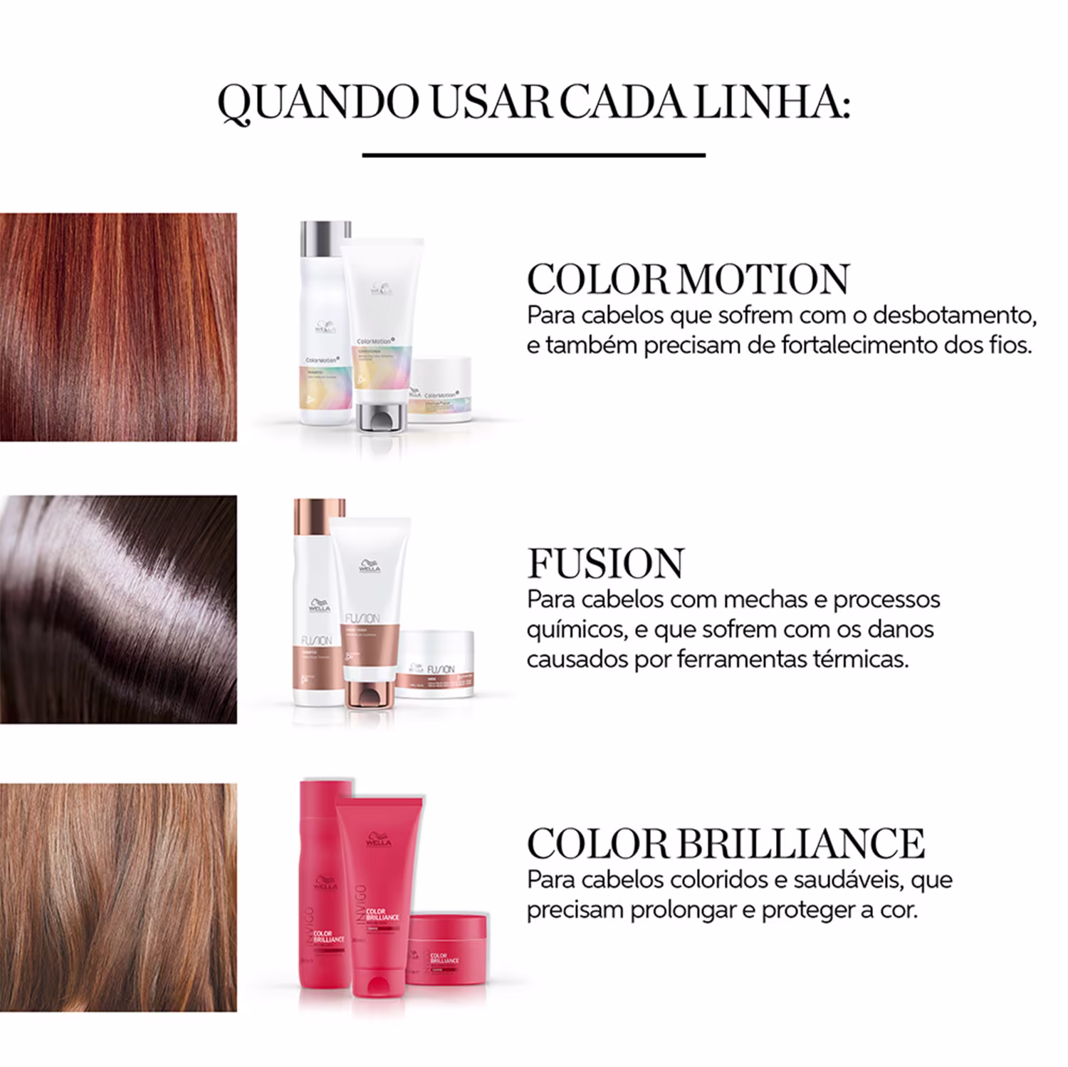 Com mais de 130 anos no mercado, e com origem alemã, Wella Professionals acompanha as tendências década após década e investe em estudos tecnológicos para estar sempre entre as maiores. A marca cuida do cabelo colorido, loiro, oleoso, sem vida, ressecado, envelhecido e com química ou alisamento. Com ativos poderosos, revitaliza a saúde capilar e recupera a beleza, o brilho, a maciez e o movimento dos fios. Há cem anos, a marca inova a cada dia para atender sempre e com mais atenção as suas clientes.