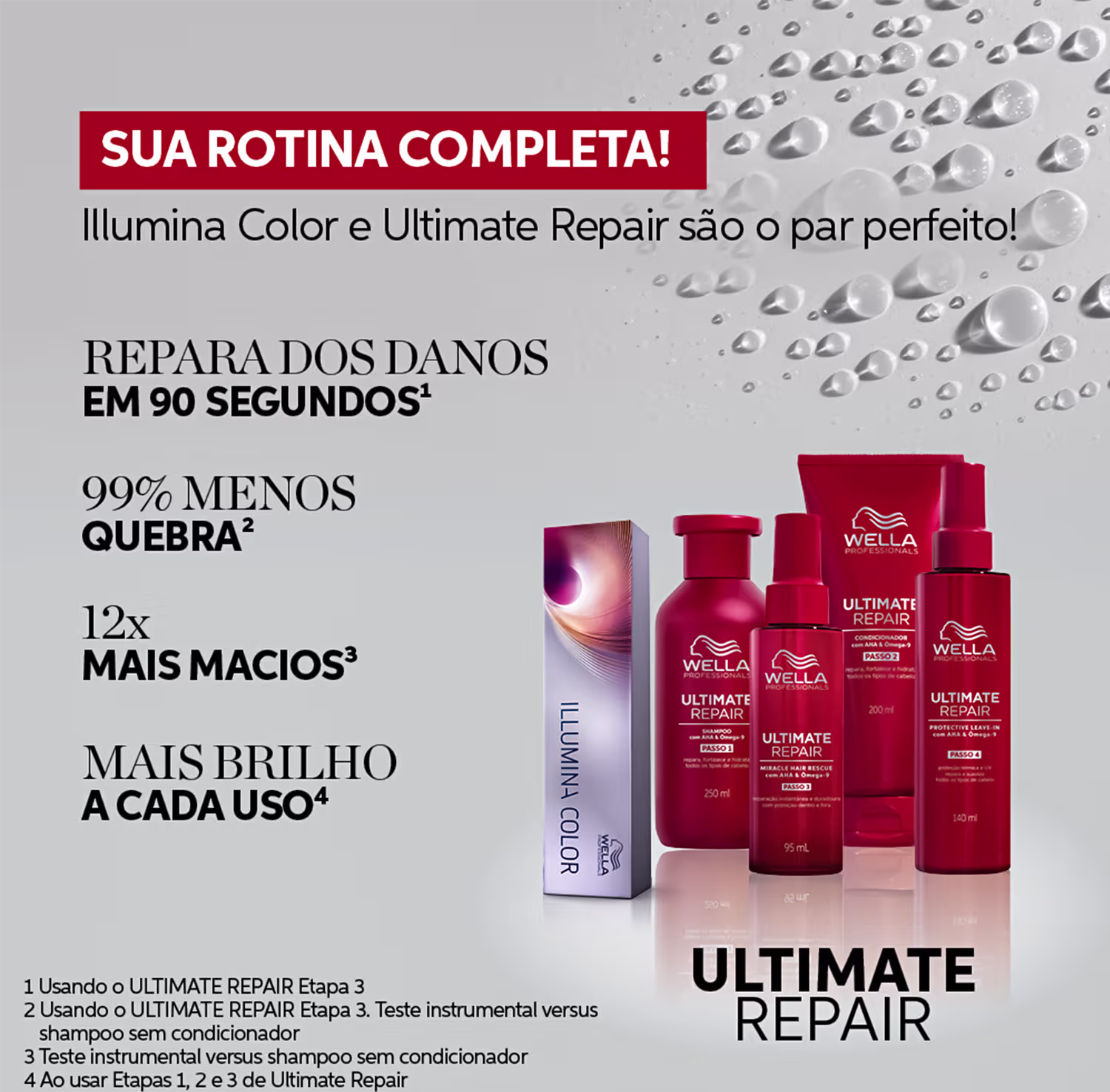 Com mais de 130 anos no mercado, e com origem alemã, Wella Professionals acompanha as tendências década após década e investe em estudos tecnológicos para estar sempre entre as maiores. A marca cuida do cabelo colorido, loiro, oleoso, sem vida, ressecado, envelhecido e com química ou alisamento. Com ativos poderosos, revitaliza a saúde capilar e recupera a beleza, o brilho, a maciez e o movimento dos fios. Há cem anos, a marca inova a cada dia para atender sempre e com mais atenção as suas clientes.