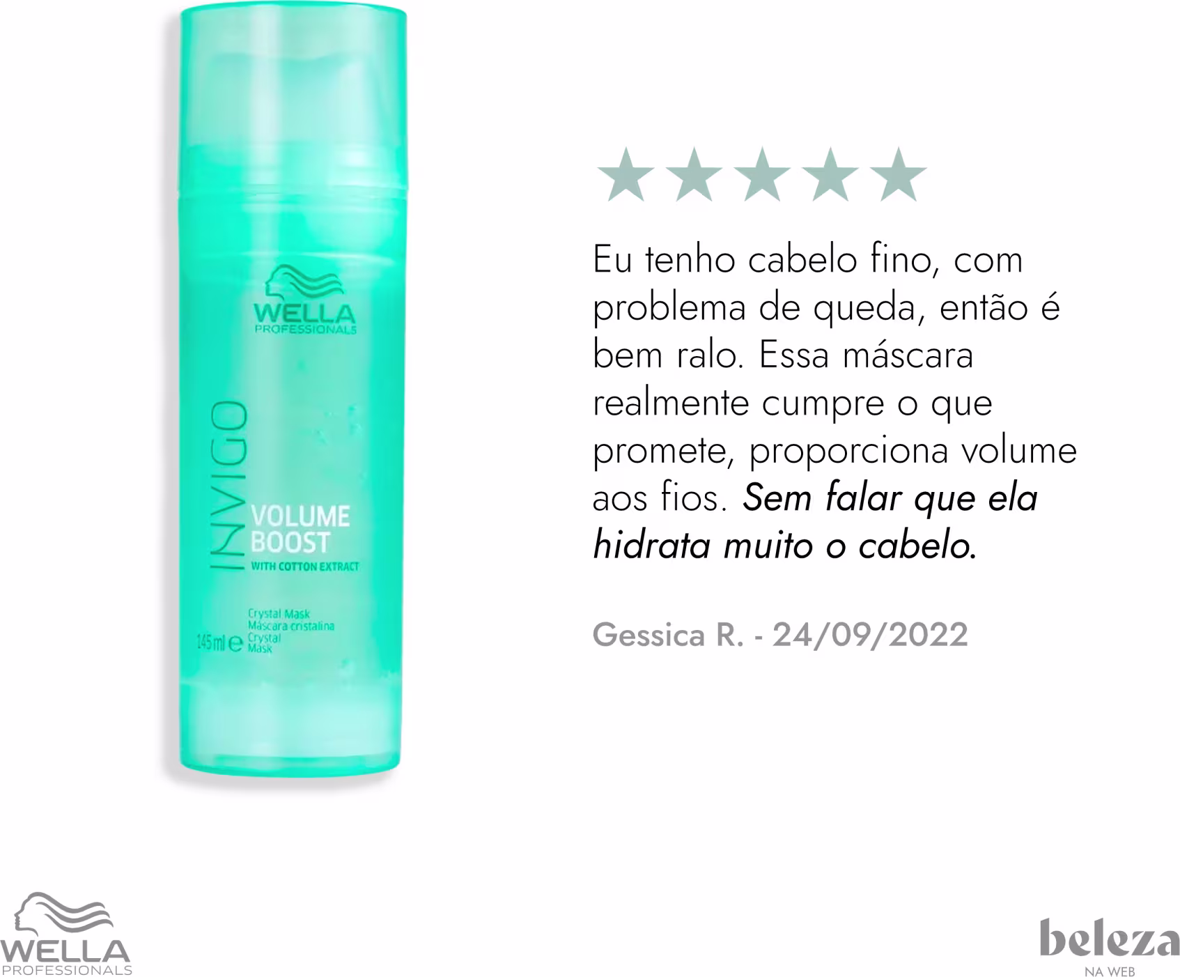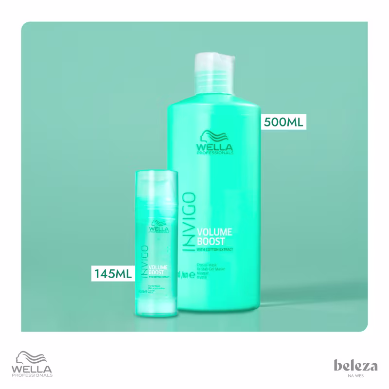 A Máscara Wella Invigo Volume Boost tem uma tecnologia pioneira por ser uma máscara cristalina, transparente. Dessa forma, ela possui uma leveza única, que não deixa o cabelo pesado e ainda proporciona volume e maciez.