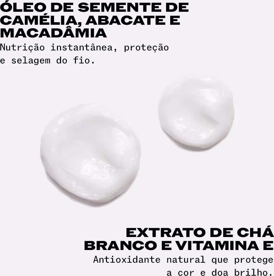 - Devolve vitalidade, brilho e maciez aos cabelos opacos e ressecados;