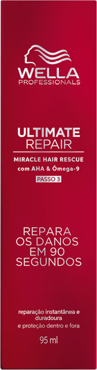 Leave-in para cabelos danificados. Wella Professionals Ultimate Repair Miracle Hair Rescue é um tratamento luxuoso em 90 segundos que promove reparação dentro e fora dos fios, de grande duração e proteção.