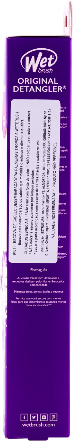 Não sei o CEPEscova de Cabelo. Wet Brush Original Detangler Palmeiras Tropicais desliza suavemente pelos fios, desembaraça sem machucar e sem quebrar as madeixas.
