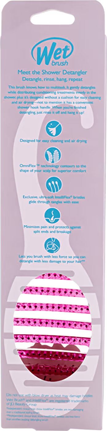 Escova de Cabelo Wet Brush Shower Detangler revolucionou a maneira de desembaraçar os cabelos, desfaz os nós mais difíceis, especialmente nos cabelos úmidos. Conta com a tecnologia Intelliflex, que oferece cerdas ultrafinas e flexíveis, para você desembaraçar os fios sem esforço, dor, danos ou quedas. Conta também com esferas Softips, na extremidade da escova, que suavizam o contato com o couro cabeludo, o que proporciona maciez no escovar.