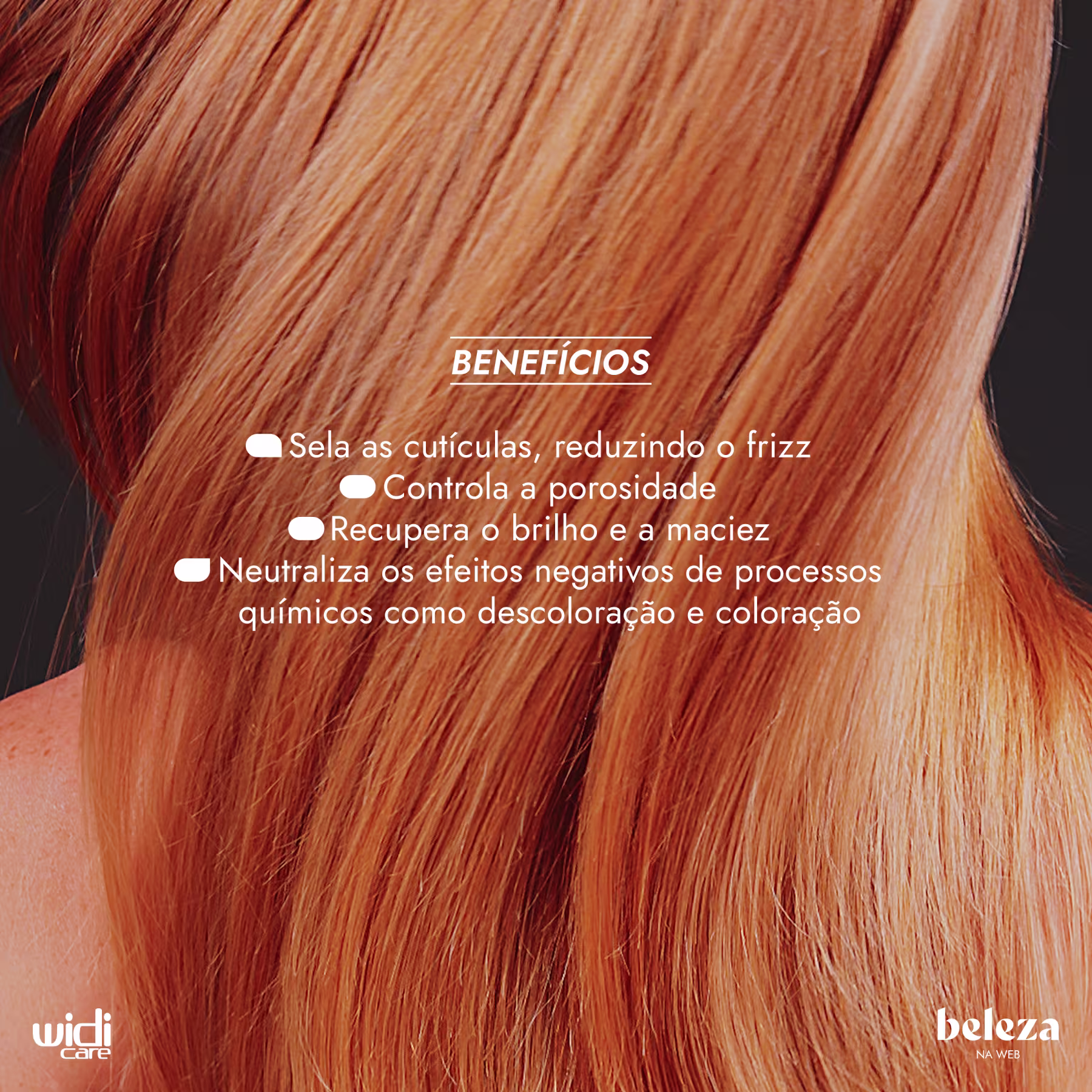 - ▸ Reduz drasticamente o frizz e o aspecto áspero do cabelo;