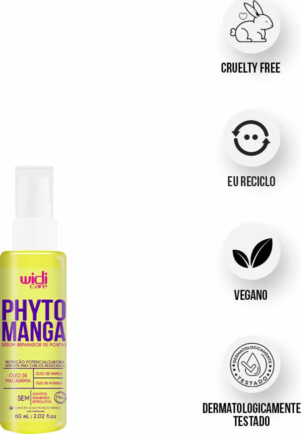 Sérum Reparador de Pontas Widi Care Phyto Manga. Nutre, hidrata e protege as pontas dos cabelos contra danos externos. Melhores séruns Widi Care na BLZ. Ver mais ❯