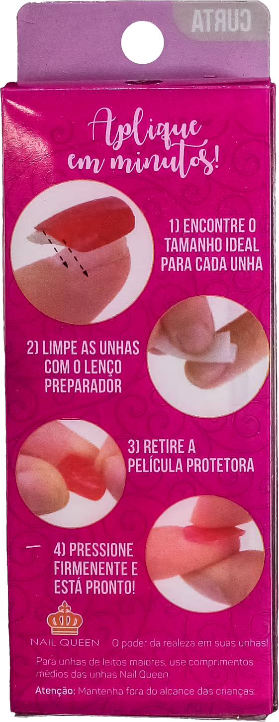 As Unhas Postiças World Queen Nail Queen Ultra Brilho Curta Vermelha Rubi 629 são autocolantes e transformam as unhas com facilidade.