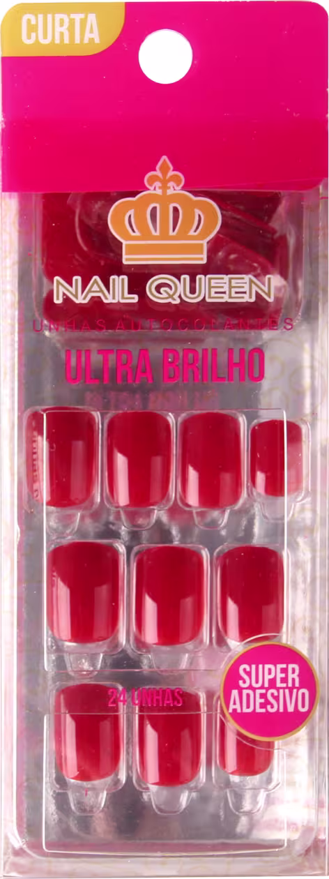 As Unhas Postiças World Queen Nail Queen Ultra Brilho Curta Vermelha Escura 643 são autocolantes e transformam as unhas com facilidade.