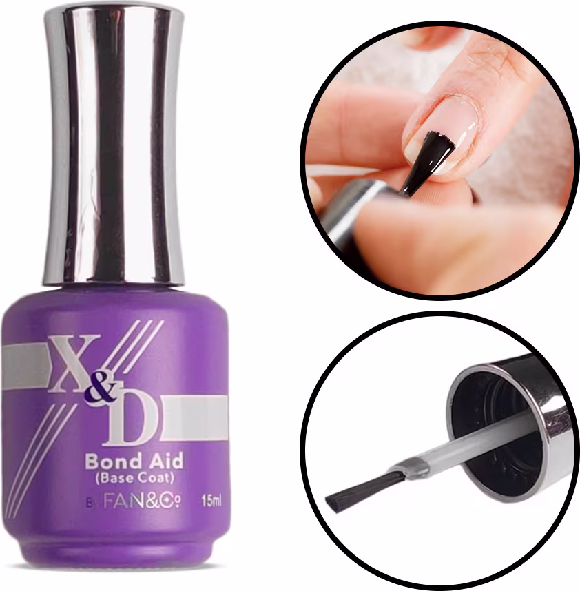 Desidratador para alongamento de unhas. X&D Bond Aid Base Coat é o segredo para unhas impecáveis e duradouras.