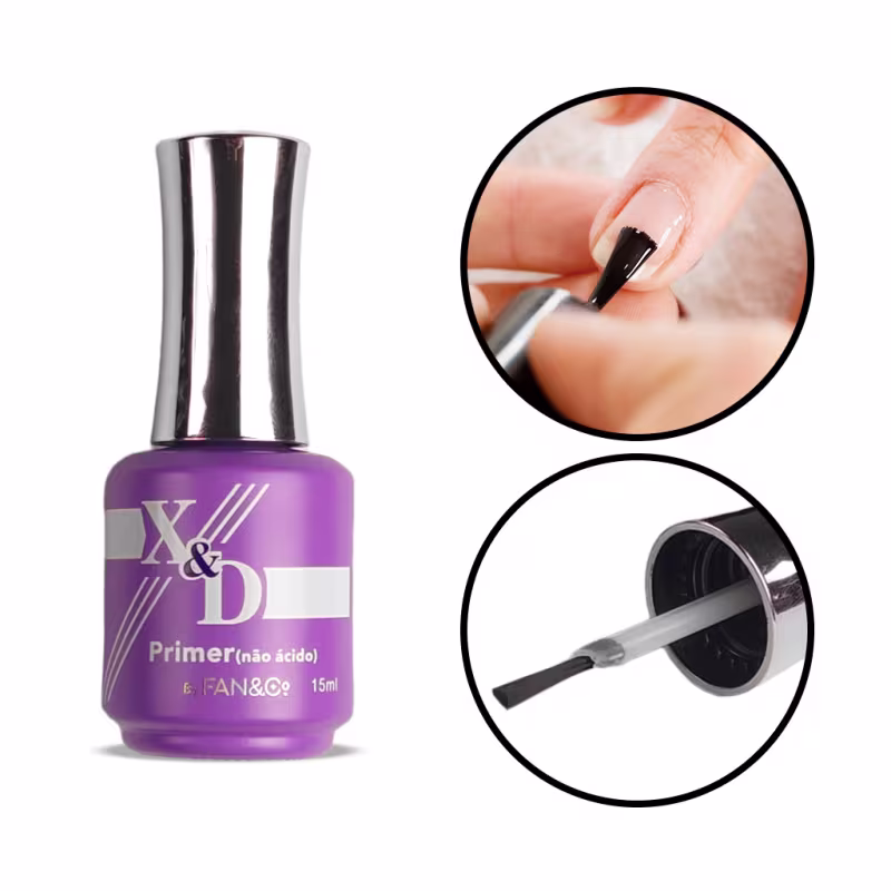 Primer preparador para alongamento de unha de gel. X&D Não Ácido é a solução ideal para profissionais que buscam um acabamento impecável e duradoura.