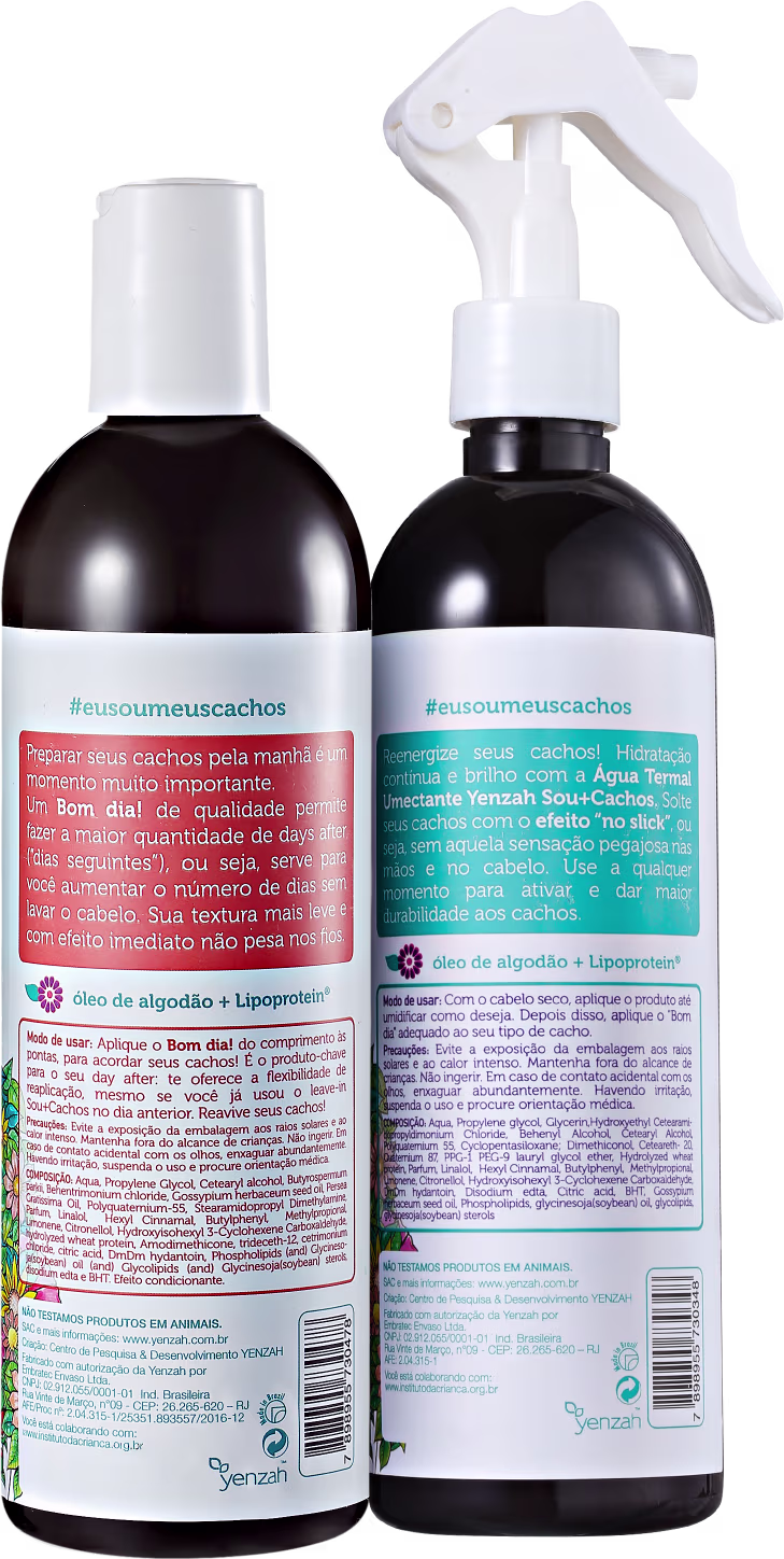 A linha Yenzah Sou + Cachos Dia Seguinte Kit é livre de sulfatos, parabenos e silicone, além de ser indicada para as técnicas de no poo e low poo.