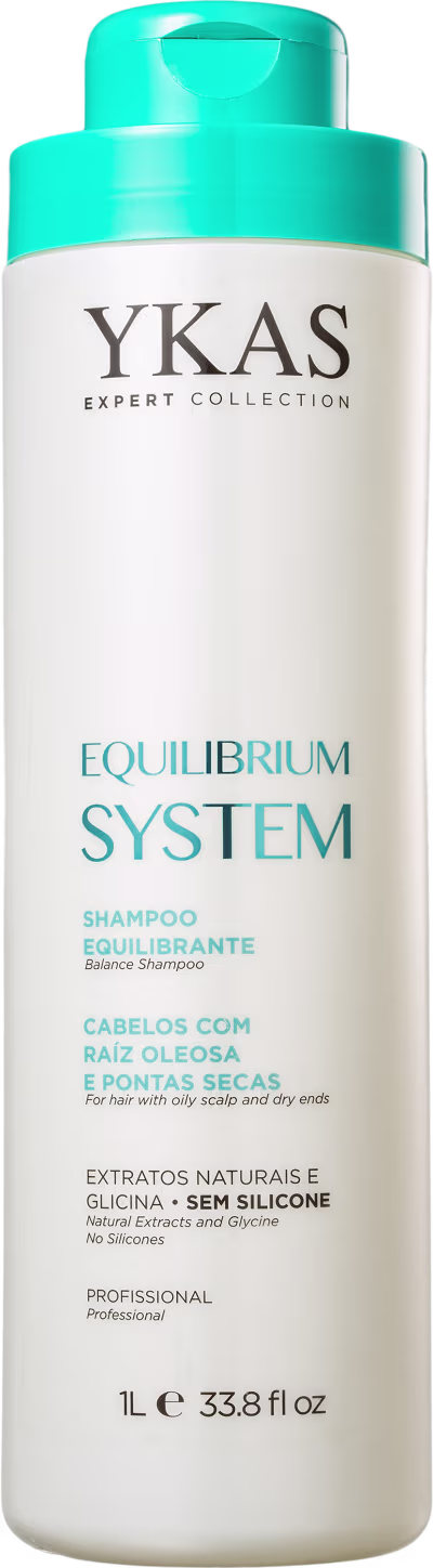 O Shampoo Equilibrium System YKAS age no couro cabeludo para equilibrar a oleosidade da raiz. Sua fórmula também evita o ressecamento e o enfraquecimento das pontas, já que balanceia a umidade natural dos fios.