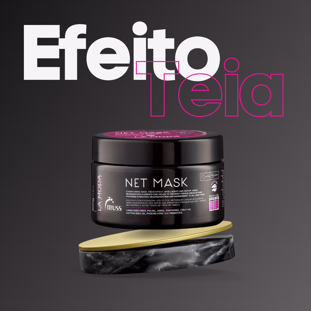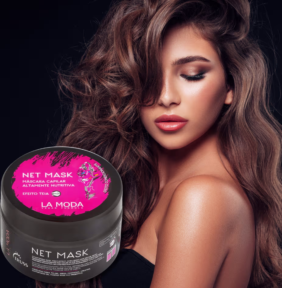Indicada para todos os tipos de cabelos, essa máscara teia com exclusivo efeito para nanorreposição da massa proteica e a nanorregeneração dos fios danificados vai envolver você! A Net Mask LA MODA VEGAN restaura a elasticidade, força e aparência natural do cabelo, sela as cutículas e prolonga a hidratação, além de intensificar o brilho dos fios. Em cabelos étnicos promove a definição dos cachos e, nos demais tipos de cabelos, fios disciplinados, sedosos e brilhantes. Promove redução de volume e confere maciez.