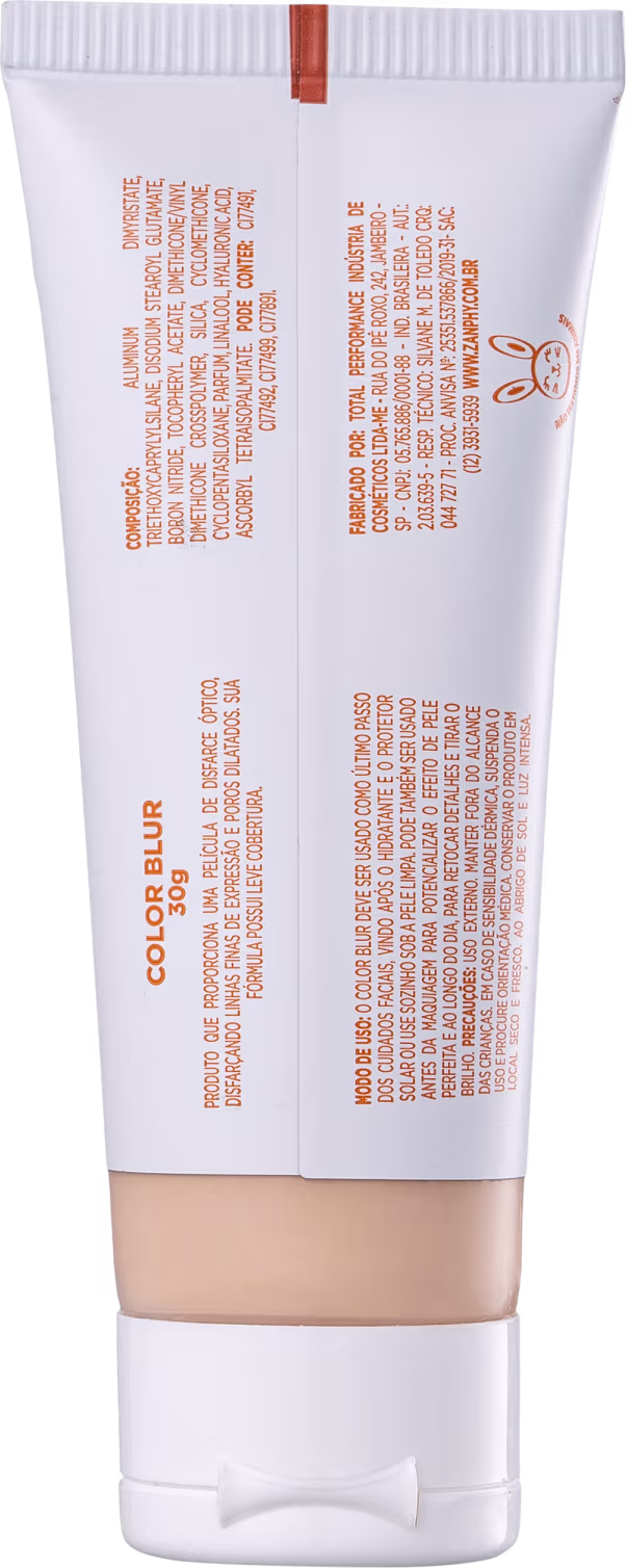 Base com acabamento matte e efeito blur. Zanphy Color Blur disfarça linhas finas, melhora a aparência dos poros e uniformiza a textura e os tons da pele, além de tratá-la de maneira profunda.