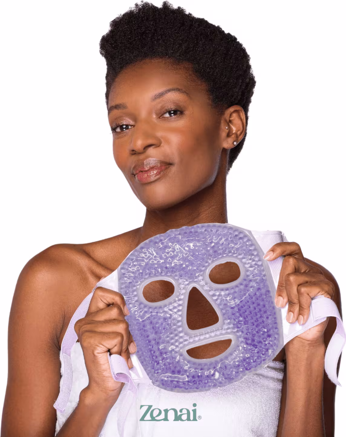 Máscara facial em gel. Zenai Double Face proporciona tratamento térmico e esferas que potencializam absorção de produtos de skincare.