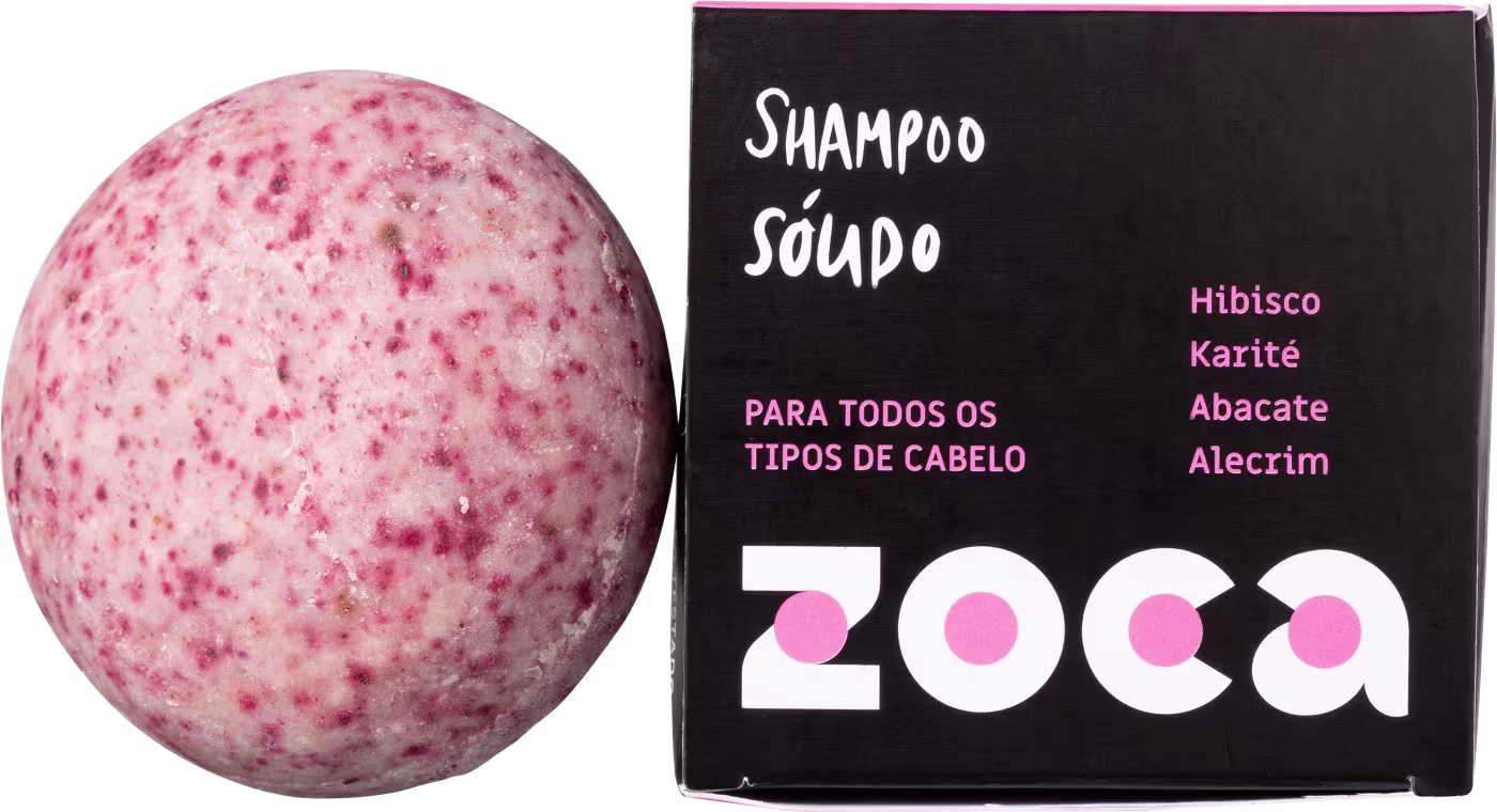 Shampoo sólido para todos os tipos de cabelos. Zoca Híbisco, Karité, Abacate e Alecrim promove limpeza do couro cabeludo e dos fios sem ressecá-los.